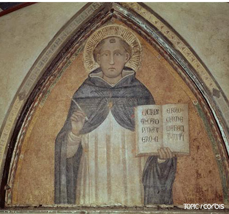 14세기 이탈리아 화가가 그린 토마스 아퀴나스의 벽화(산타마리아 노벨라 성당 내부). |