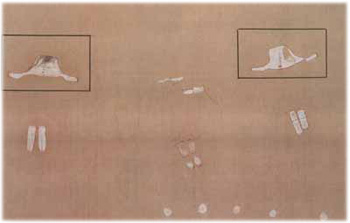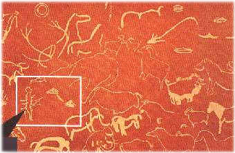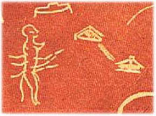 왼쪽의 인간과 유사한 생물체 앞에 접시 모양을 한 비행체들이 움직이고 있음을 알 수 있다. 그리고 비행체들의 인공물로서의 기하학적 특성이나 형태는 현대에 관찰되고 있는 유에프오들과 기본적으로 완전히 동일한 것이다. 앞에서와 마찬가지로, 당시의 구석기인들이 이런 형태를 자발적으로 발상해 낼 가능성은 매우 낮다.