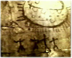 약 7천년 정도 전에 그려진 것으로 알려진 멕시코의 이 그림은 하늘에 나타난 정체 불명의 빛을 발하는 거대한 원반과 이를 보고 있는 사람들의 모습이 확연하게 담겨져 있다. 아래의 팔을 벌리고 서 있는 네 사람의 자세는 느닷없는 물체의 출현에 놀라고 있는 목격자들의 감정의 일단을 보여주는데. 어쩌면 신적인 존재로서 이 비행체를 경배하고 있는지도 모른다. 위의 그림을 태양으로 여길 수도 있지만 그러기에는 크기가 너무 크고 또 가깝게 그려져 있을 뿐 아니라, 표면의 둥그런 형상을 설명하기 어렵다고 생각된다.