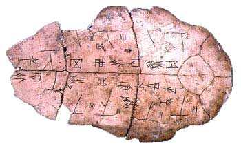 BC 1600년경의 은허 유적지에서 출토된 갑골문.