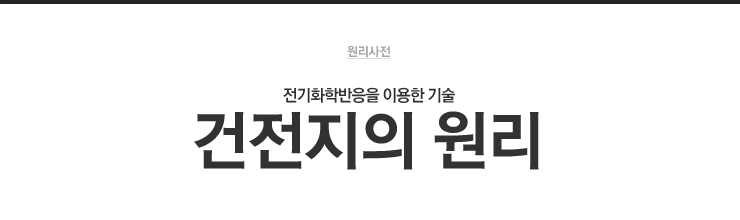 전기화학반응을 이용한 기술들은 산업현장에서 널리 쓰이고 있다. 그 중 대표적인 것으로 우리 생활에서 자주 볼 수 있는 것이 전지이다. 특히 건전지의 경우 일상 생활에서 자주 사용하게 되는데, 건전지에는 어떤 원리가 담겨있는 것일까? 전지(battery)는 내부에 들어있는 물질의 화학에너지(chemical energy)를 전기 에너지(electrical energy)로 변환하는 장치이다. 이 중 건전지는 초기 볼타전지(Voltaic cell)의 전해질이 액체이기 때문에 생기는 불편한 점을 없애고자 유동성이 없는 수용성 전해질을 넣어서 만든 것을 말한다.