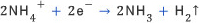 전해질 속의 암모늄 이온은 녹아 나온 아연이온에 의해 밀려나 탄소막대 쪽으로 모이게 되고, 탄소막대에서 전자를 얻어 암모니아(NH3)와 수소(H2)로 분해된다.