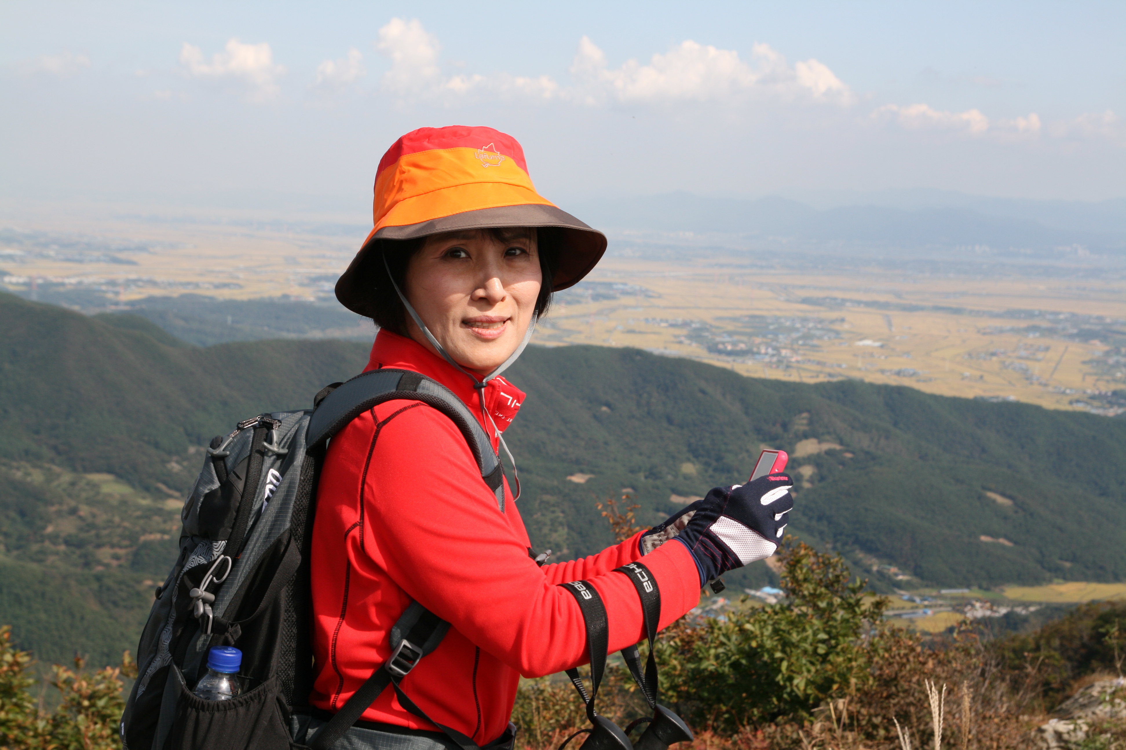 농사가 싫다하여 떠나버린 저 들녘엔 지금 노인들만 모여 벼 타작을 하며 끙끙대고 있을 것이지만 지금 우리는 그런 실상은 접어두고 산 정상에 올랐다는 성취감에 산 아래를 내려다보며 정경에 취해 감동스러워 했다.