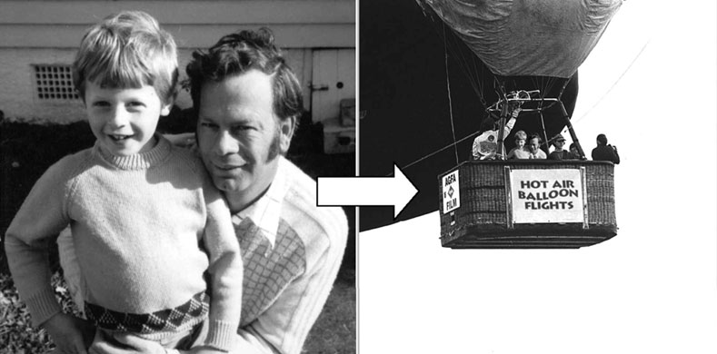 » 그림 2. 2002년 린드세이 교수가 거짓 기억을 형성시키기 위해 사용한 진짜 사진(왼쪽)과 합성된 가짜 사진(오른쪽). 4세에서 8세 사이의 아이들을 대상으로 생일파티나 가족 휴가에서 찍은 사진을 받아서 열기구에 탑승하고 있는 사진을 포토샵을 이용해 합성하였다. 거짓 기억을 유도하기 위해 합성된 열기구 사진들을 다른 진짜 사진들과 섞어서 그럴듯한 이야기와 함께 아이에게 반복적으로 보여주었다. 출처/ 각주 [1]