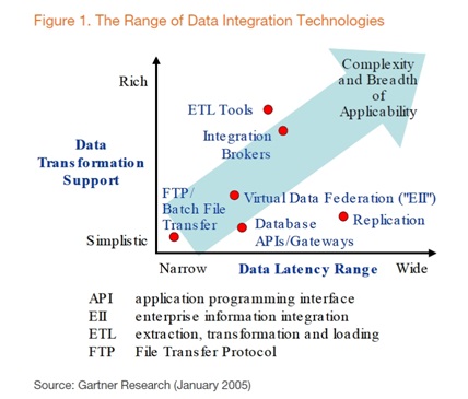 데이터 통합을 위한 기술적인 방법론으로는 크게 EAI(Enterprise Application Integration), EII(Enterprise Information Integration) 그리고 ETL(Extract/Transform/Load)로 정의해 볼 수 있다.
