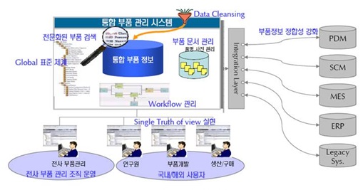 이를 통해 중복 개발 및 중복 구매로 인한 투자 감소와 통합 구매를 통한 원가 절감 및 통합 자재 관리 그리고 제품 개발 기간 단축 등의 효과는 물론 체계적인 정보 관리로 정확하고 신속한 경영 의사 결정이 가능해졌다.